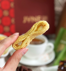 特色是薄脆如紙的糖衣,特製的糖衣呈現極致薄透的「薄脆」感,