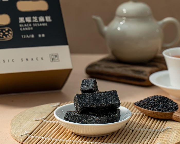 芝麻糕: 濃郁黑芝麻香氣,補給滿滿營養,甜而不膩的古早芝麻香。