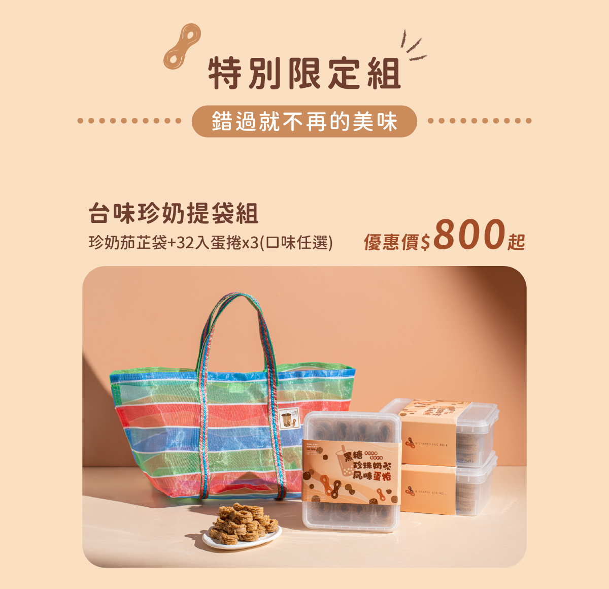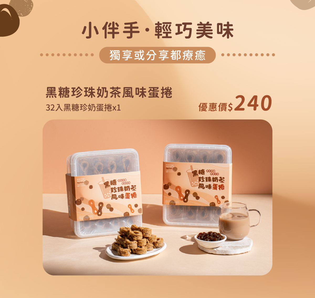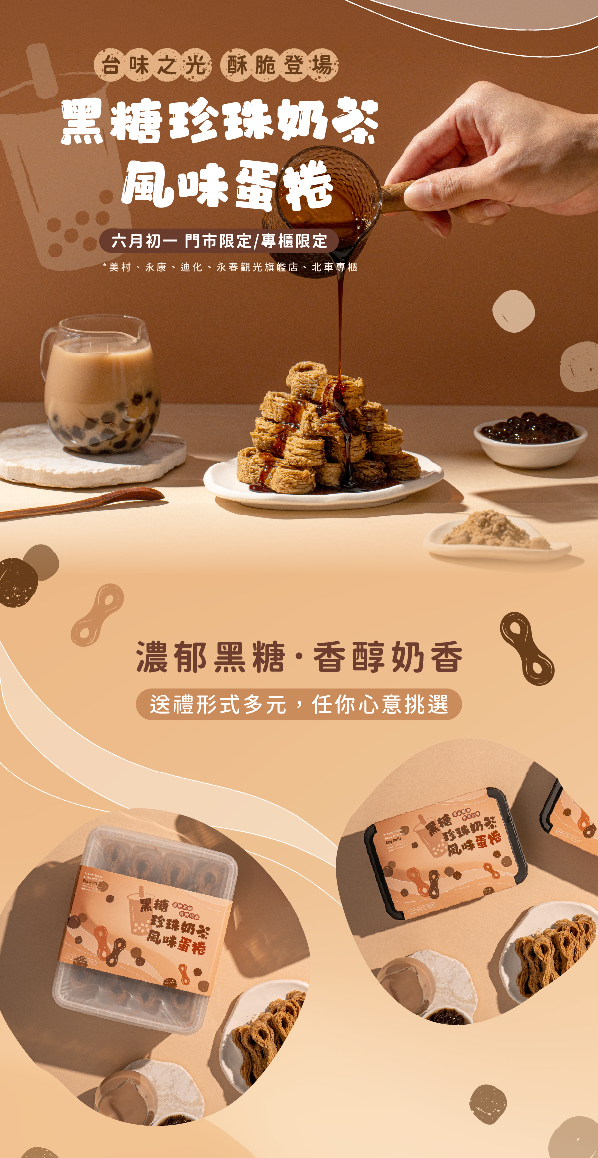 【門市期間限定-黑糖珍奶風味蛋捲】台味之光 酥脆登場