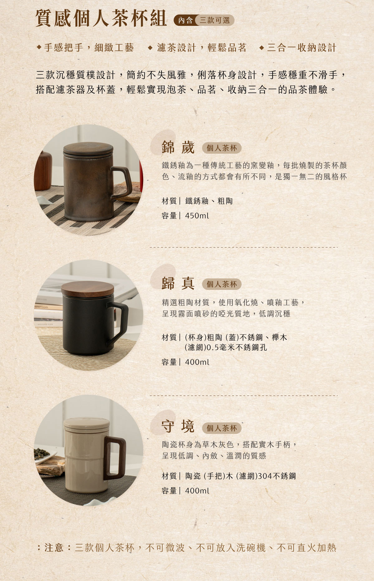 材質:杯身/陶瓷;手把/實木;濾網/不銹鋼
