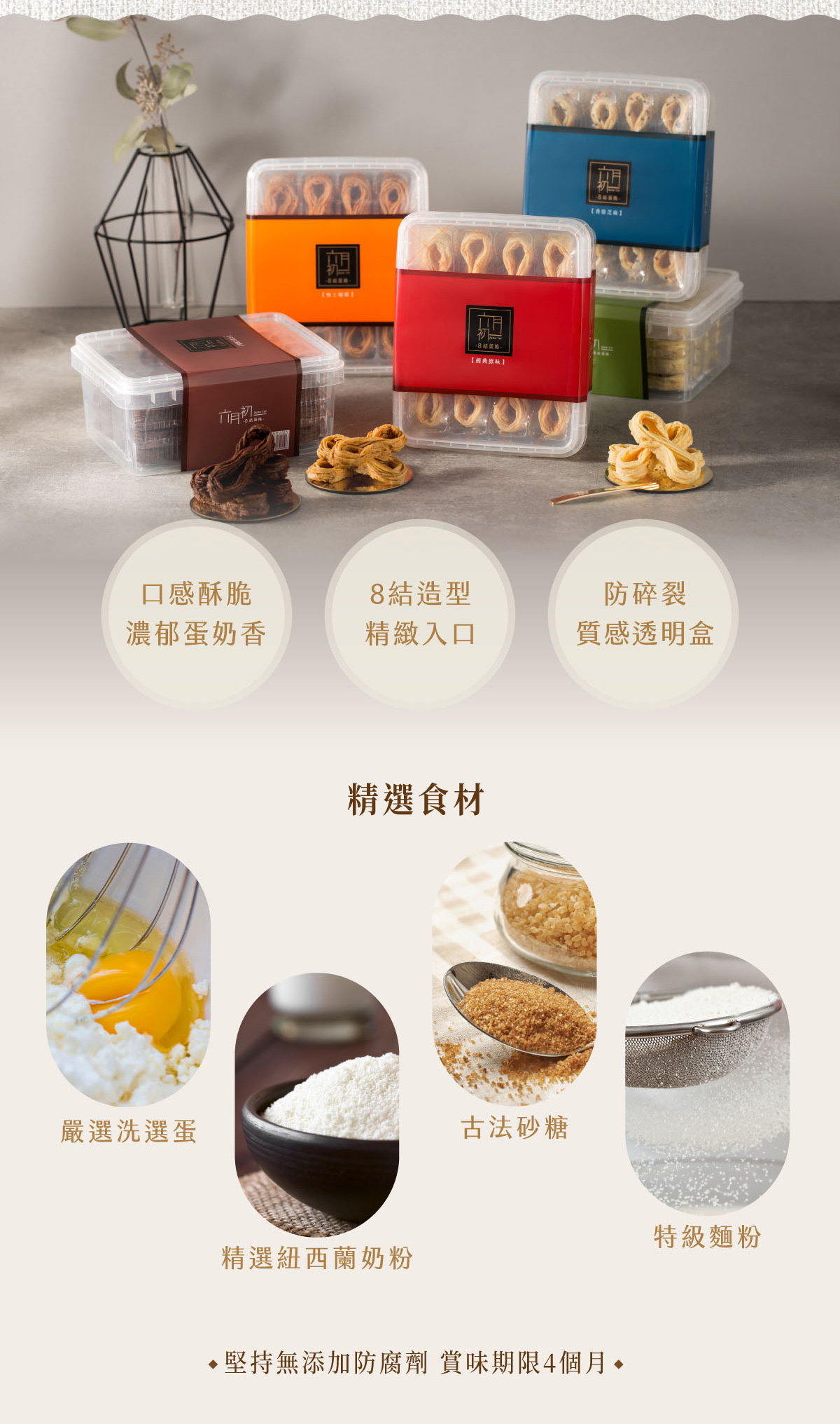 容量:64g(淨重),8顆蛋捲/盒 保存期限:四個月,實際有效日期,請依商品盒身標示為準。開封後請盡速食用完畢。