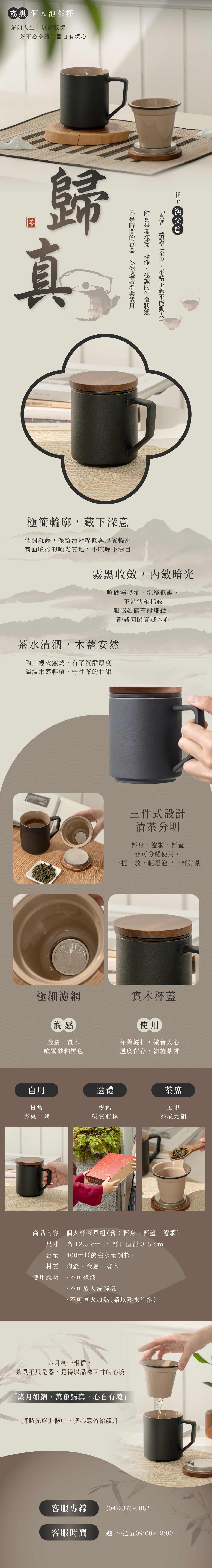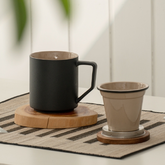 材質:杯身/粗陶;蓋/不銹鋼、櫸木;濾網/不銹鋼